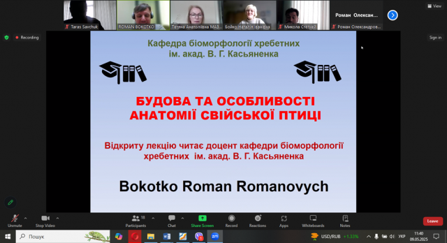 Тема лекції відповідала актуальним викликам сучасної ветеринарної науки та практики й була присвячена будові та особливості анатомії свійської птиці. Особливої уваги під час лекції було приділено саме особливостям будови свійської птиці.