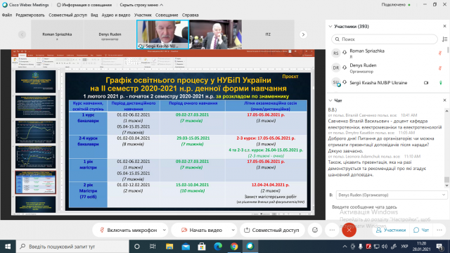 Сергій Кваша доповів про організацію освітнього процесу у другому семестрі 2020-2021 навчального року, а Ігор Ібатуллін окреслив завдання кафедр із ведення наукової діяльності у 2021 році.