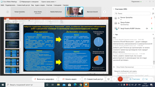 28 лютого 2021 року у режимі онлайн відбулась університетьська нарада із завідувачами кафедр. Від кафедри генетики, селекції і насінництва ім. проф. М.О. Зеленського прийняли участь Олександр Макарчук, Ганна Ковалишина та Юлія Дмитренко.