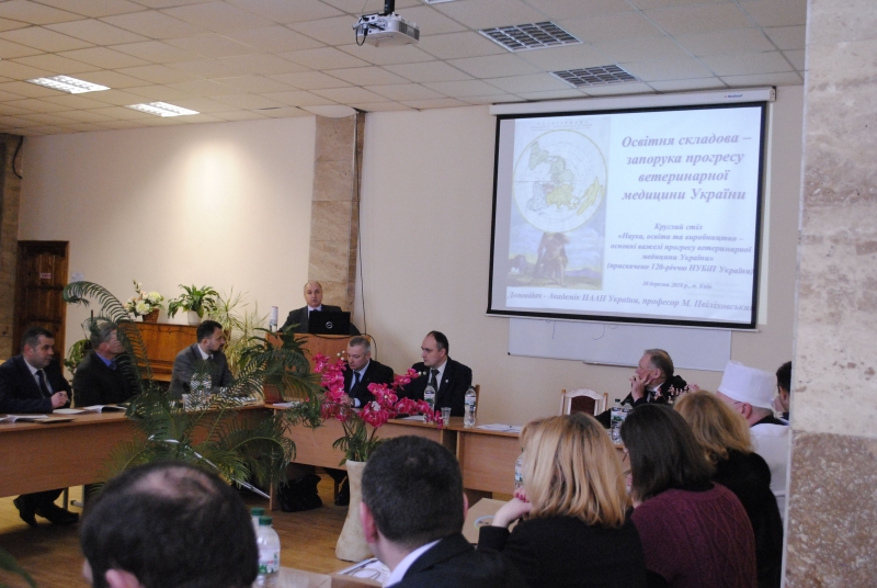 30 березня 2018 року на базі факультету ветеринарної медицини НУБіП України був проведений круглий стіл на тему «Наука, освіта та виробництво – основні важелі прогресу ветеринарної медицини України», присвячений 120-річчю НУБіП України. Організаторами заходу виступили Національний університет біоресурсів і природокористування України, Національна академія аграрних наук України, Українська лабораторія якості і безпеки продукції АПК НУБіП України.