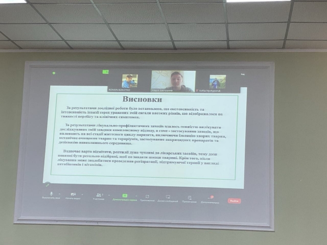 9 квітня учасники наукового гуртка «Паразитологія та тропічна ветеринарія» взяли участь у конкурсі студентських наукових робіт факультету ветеринарної медицини, представивши результати власних досліджень.