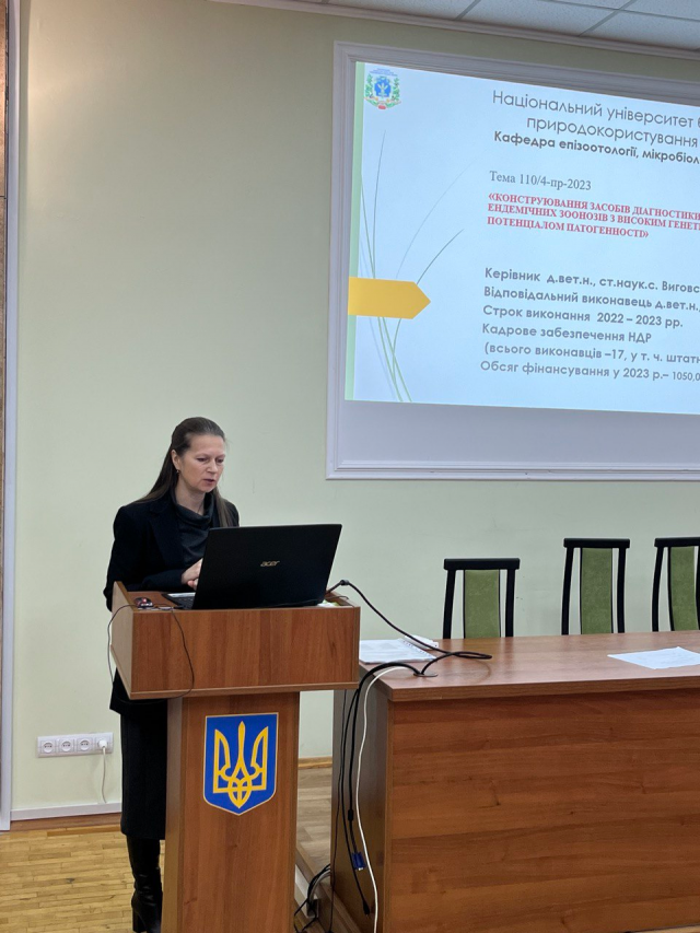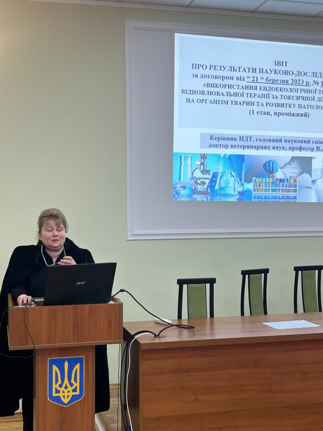 Колективні результати з виконання наукових робіт представляли, зокрема: професор Микола Малюк (НДР №110/5-пр-2022 «Науково-експериментальне дослідження механізму дії компонентів донорської крові у ветеринарній медицині за патології різного генезу»), професор Вікторія Грищенко (НДР №110/10-пр-2023 «Використання ендоекологічної технології відновлювальної терапії за токсичної дії ксенобіотиків на організм тварин та розвитку патологій»), професор Лілія Калачнюк (НДР № 110/2-ф-2023 «Регуляторні механізми метаболізму в організмі за умов його адаптації до екзогенного впливу»), професор Олена Журенко (НДР №110/8-пр-2023 «Фізіолого-біохімічні організми нейро-вісцеральних взаємин в організмі тварин за впливу новітніх наноактивних біогенних елементів»), професор Лілія Виговська (НДР № 110/4-пр-2023 «Конструювання засобів діагностики збудників актуальних ендемічних зоонозів з високим генетичним та фенотиповим потенціалом патогенності») та професор Валерій Ушкалов (НДР №110/9-пр-2022 «Вивчення феномену біоплівкоутворення та антибіотикорезистентності у мікроорганізмів для розробки молекулярно-генетичних засобів діагностики емерджентних зоонозів»).