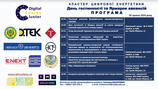 Науково-методичний семінар «Кластер цифрової енергетики» 30 травня 2024 року 24 травня 2024 року 11:50 - 11:50