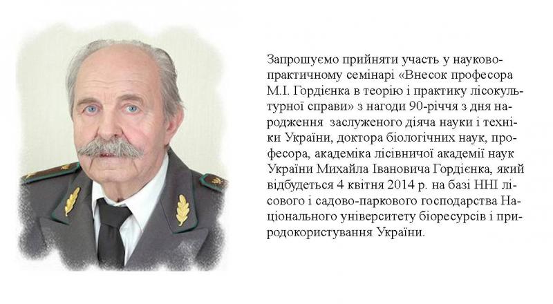 Науково-практичний семінар «Внесок професора М.І. Гордієнка в теорію і практику лісокультурної справи» 2 квітня 2014 року 03:00 - 03:00