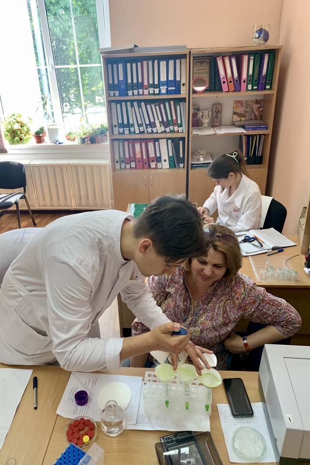 Активну участь у проведені майстер класів під час практики приймали співробітники кафедри фізіології, біохімії рослин та біоенергетики. Так, ст. викладач Дащенко А.В. детально ознайомила студентів з оцінкою основних морфометричних показників у рослин та «поділилася секретами» візуальної ідентифікації вірусних уражень. Завідувач кафедри Прилуцька С.В. «поділилася секретами» щодо сучасних методів визначення активності антиоксидантних ензимів, зокрема, каталази і аскорбатпероксидази, як показників оксидативного стресу у хворих рослин.