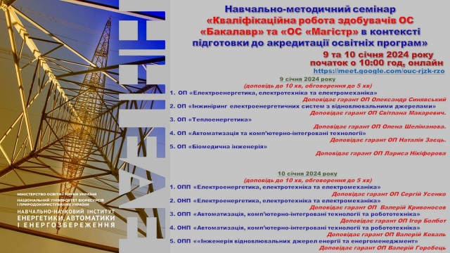 Навчально-методичний семінар «Кваліфікаційна робота здобувачів ОС «Бакалавр» та «ОС «Магістр» 5 січня 2024 року 02:00 - 02:00