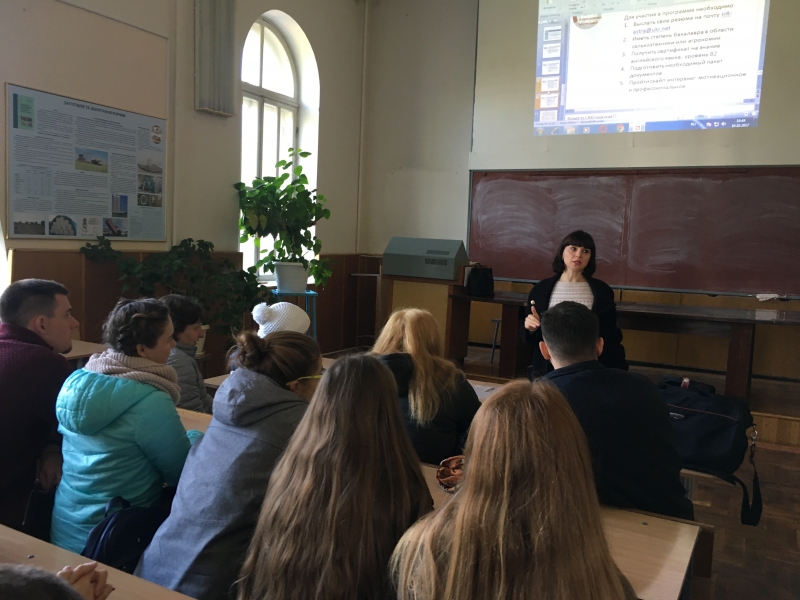 10.10.2017 року НПП кафедри англійської мови для технічних і агробіологічних спеціальностей за підтримки агробіологічного, механіко-технологічного факультетів та факультету конструювання і дизайну організували зустріч магістрів зазначених вище факультетів із директором HR департаменту компанії «Агробудівельний Альянс «Астра» Наталією Гук.