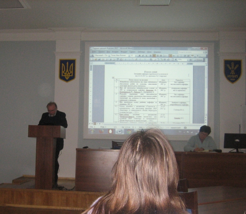 Яким би не був рівень навантаження, навчальний процес має йти за планом. Уже добігає кінця семестр і це вимагає контролю за виконаними завданнями. Найбільш актуальним питанням зараз є стан підготовки до захисту випускних робіт магістрів. У звʹязку з цим, на кафедрі було проведено попередній розгляд магістерських робіт. На заході заслухали доповіді магістрів другого року навчання: Рибочок Ю.О. «Науково біологічне обґрунтування рибогосподарської експлуатації малої водойми розташованої на р. Роська біля села Теліжинці Київської області», Павлюка С.С. «Рибницько-біологічне обґрунтування режиму рибогосподарського використання Білоцерківського нижнього водосховища, розташованого на р. Рось», Левченка О.Ю. «Оцінка впливу браконьєрського рибальства на видовий склад іхтіофауни Київського водосховища», Майсюри Є.О. «Розробка заходів поліпшення природної кормової бази для традиційної ставової полікультури на базі ВП НУБіП України Немішаєвський ДАК», Тікучової Т.А. «Заводське відтворення строкатого товстолоба (Aristichthys nobilis Rich.) та вирощування рибопосадкового матеріалу в умовах «Іркліївського розплідника рослиноїдних риб», Корди А.О. «Заводське відтворення коропа (Cyprinus carpio L.) та вирощування рибопосадкового матеріалу в умовах дослідного господарства «Нивка» ІРГ НААН», Караченцева Є.С. «Рибоводно-біологічна оцінка плідників українського малолускатого коропа у Поліській зоні аквакультури України (на прикладі дослідного господарства «Нивка»)» та усіх інших, закріплених за кафедрою.