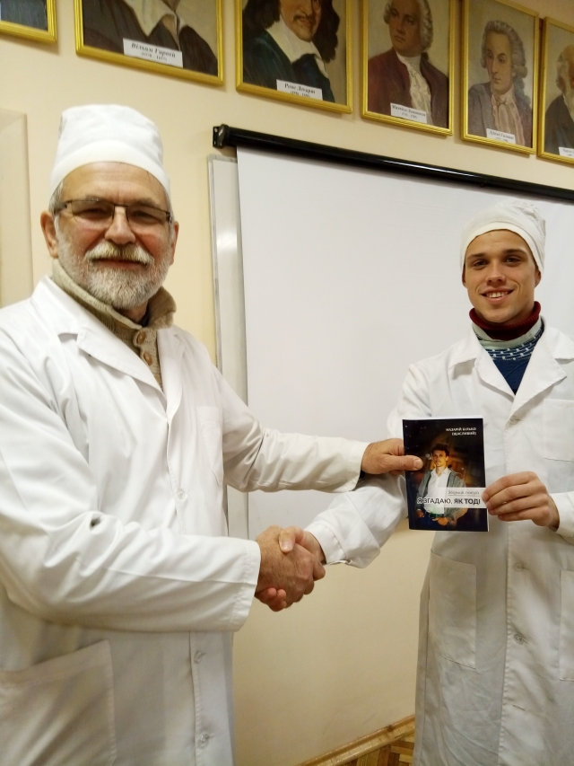 Насамкінець Назарій Білько, який виявився не лише справжнім знавцем фізіології бджіл, а й досить цікавим, талановитим поетом, презентував свою поетичну збірку «Я згадаю, як тоді». Автор подарував один із примірників кафедрі біохімії і фізіології тварин ім. М. Ф. Гулого в особі професора Віктора Трокоза.