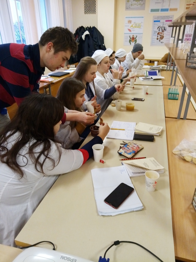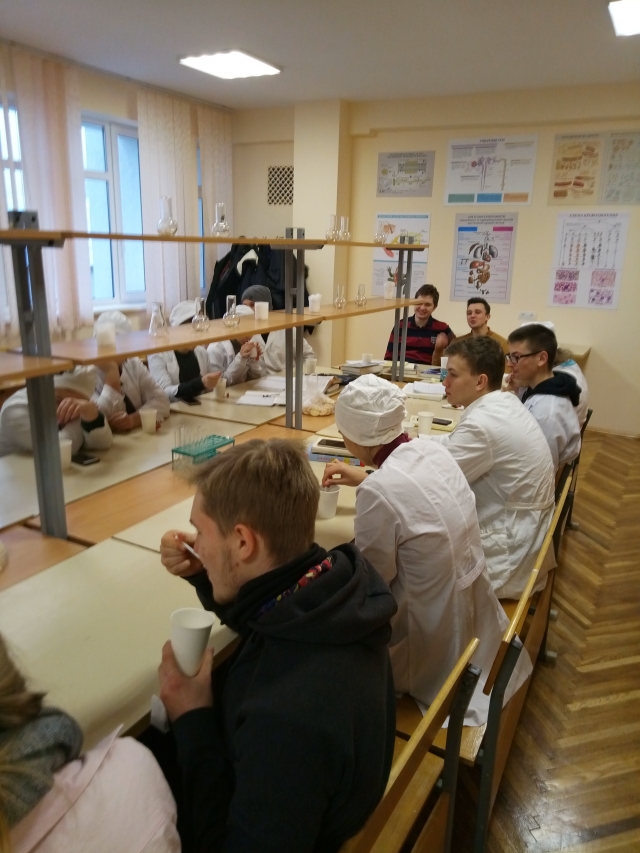 Після закінчення доповіді та ґрунтовних відповідей на безліч запитань всі присутні на занятті студенти із задоволенням використали свої власні аналізатори для органолептичної оцінки та дегустації медів Хмельницької області із власної пасіки Назарія Білька. Було представлено гречаний, різнотравневий і соняшниковий меди. Залюбки посмакувавши студенти довідалися ще багато цікавого про аналізатори та їх роль у життєдіяльності тварин.
