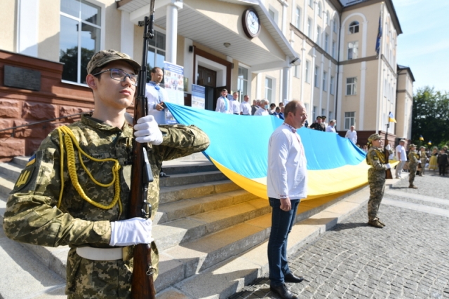 З вітальним словом до присутніх звернувся ректор університету академік Станіслав Ніколаєнко, який, зокрема, зазначив: « 30 років незалежності – подія непересічна. За нею довелося заплатити своїми життями мільйонам українців, щоб ми сьогодні стояли під сонцем у своїй державі… Наша країна пройшла важкий шлях становлення, та й у майбутньому, на жаль, бачимо загрози: складна економічна ситуація, пандемія коронавірусу, російська агресія на сході. Та мусимо вистояти і зробити все, аби наша держава розвивалася. І тут багато залежить саме від нас, адже на мапі України немає міста чи села, де б сьогодні не працювали наші випускники.»