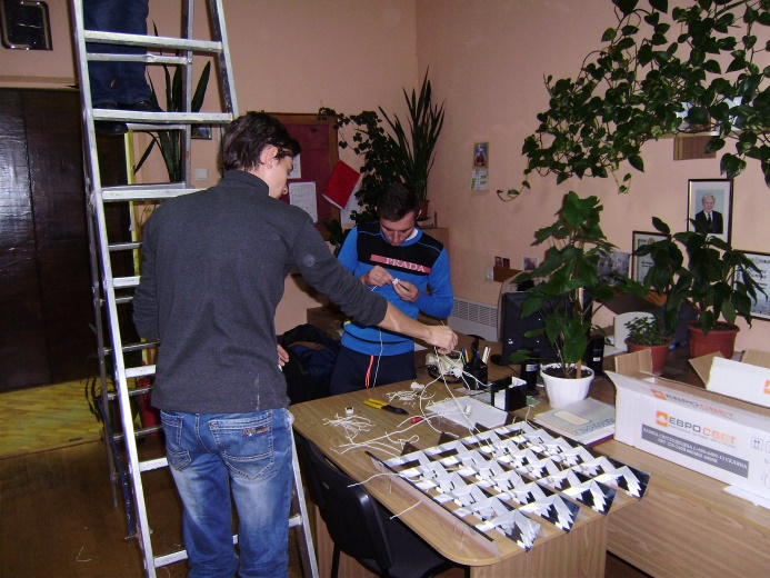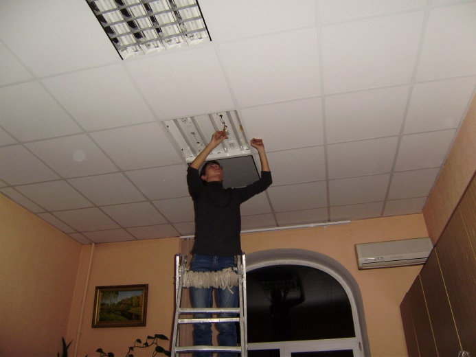 Враховуючи обсяг робіт, допомогу в облаштуванні приміщень навчального корпусу № 1 сучасним освітленням погодилася надати дирекція ННІ енергетики, автоматики і енергозбереження. Під керівництвом заступника директора Семена Волошина четверо студентів-електриків Микола Петров, Євген Кравчук, Роман Пасека та Олександр Шевчук за останній тиждень встановили вже понад 200 світлодіодних ламп. Найближчим часом планується заміна світильників на сходових маршах, в читальному залі та встановлення датчиків руху.