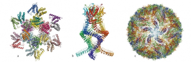 Жак Дюбоше, Йоахім Франк і Річард Хендерсон отримали Нобелівську премію з хімії 2017 року за розробку ефективного методу створення тривимірних зображень молекул життя. Використовуючи кріоелектронну мікроскопію, дослідники тепер можуть заморозити біомолекули в середині руху та зобразити їх в атомарній роздільній здатності. Ця технологія перенесла біохімію в нову еру.Вони зобразили життя в атомних деталяхЗа останні кілька років численні дивовижні структури молекулярного механізму життя заполонили наукову літературу (рис. 1): ін’єкційна голка сальмонели для атаки на клітини; білки, які надають стійкість до хіміотерапії та антибіотиків; молекулярні комплекси, які керують циркадними ритмами; світловловлюючі реакційні комплекси для фотосинтезу та датчик тиску типу, який дозволяє нам чути. Це лише кілька прикладів із сотень біомолекул, які тепер були зображені за допомогою кріоелектронної мікроскопії (кріо-ЕМ).Коли дослідники почали підозрювати, що вірус Зіка спричиняє епідемію новонароджених із ураженням мозку в Бразилії, вони звернулися до кріо-ЕМ, щоб візуалізувати вірус. Протягом кількох місяців були створені тривимірні (3D) зображення вірусу з атомною роздільною здатністю, і дослідники могли почати пошук потенційних мішеней для фармацевтичних препаратів.