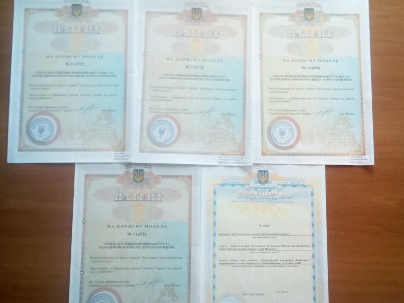 • «Спосіб профілактики комбінованого охра- та дезоксиніваленолотоксикозу курчат-бройлерів»;