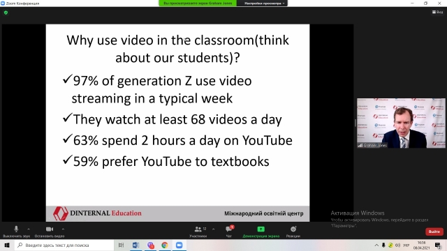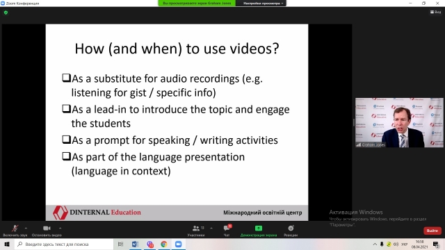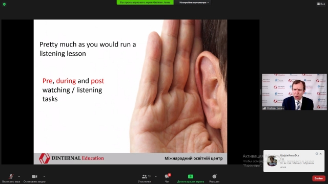 Тема семінара: «Цікаве та ефективне використання відео- та аудіоматеріалів на заняттях іноземної мови». Учасники семінара отримали практичні поради щодо ефективного використання відео- та аудіоматеріалів для розвитку продуктивних навичок студентів, а також для активного закріплення лексики та граматики.