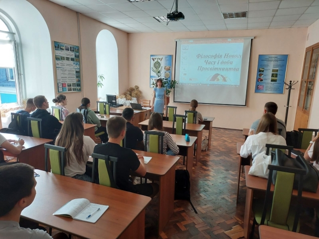 25 вересня 2023 року також відкриту лекцію проводила доцент кафедри Тетяна Кичкирук з дисципліни «Філософія» студентам 1 курсу агробіологічного факультету спеціальності «Садівництво та виноградарство». Згідно з планом лекції студенти ознайомилися з соціально-політичними і духовними передумовами формування філософії Нового часу та доби Просвітництва, з головними досягненнями та характерними рисами зазначеного періоду. Лекцію супроводжував влучно підібраний презентаційний матеріал, що посилювало ефект сприйняття і засвоєння матеріалу. Питання, звернені до аудиторії, сприяли здійсненню зворотного зв'язку та додали емоційного забарвлення.