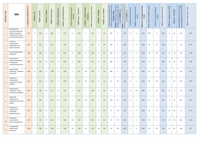 Центр міжнародних проєктів "Євроосвіта" (http://www.euroosvita.net/) та група експертів IREG Observatory on Academic Ranking and Excellence (ireg-observatory.org/en/) формує даний рейтинг за десятьма показниками з врахуванням суб’єктивності ваги окремих з них. За показником кількості стипендіатів Президента України та Кабінету Міністрів України для молодих вчених наш університет посів за рейтингом перше місце серед 200 університетів України. Інші місця теж високі, зокрема, за кількістю отриманих патентів – 5 місце, участю студентів у II турі всеукраїнської олімпіади і конкурсів наукових робіт 2018/2019 – 7 місце, два 7 місця за показниками представлення університету та популярності у Інтернет-просторі та участі у програмах Erasmus+ЄС.