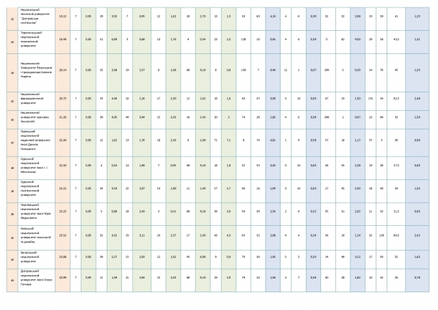 Також продовжує негативно впливати на наше рейтингове місце у “ТОП-200 Україна” середній конкурсний бал за заявами абітурієнтів-вступників, -маємо далеке 76 місце. Саме ці два показники виявили найбільш негативний вплив і визначили для НУБІП України 14 місце у даному рейтингу.