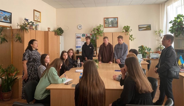 Діти та вчителі познайомилися із завідувачкою кафедри Валентиною Культенко, яка розповіла їм про спеціальність «Міжнародні відносини, суспільні комунікації та регіональні студії», особливості та переваги навчання на спеціальності, навчання на програмі подвійних дипломів в м. Слупську (Польща) та можливості закордонного стажування.