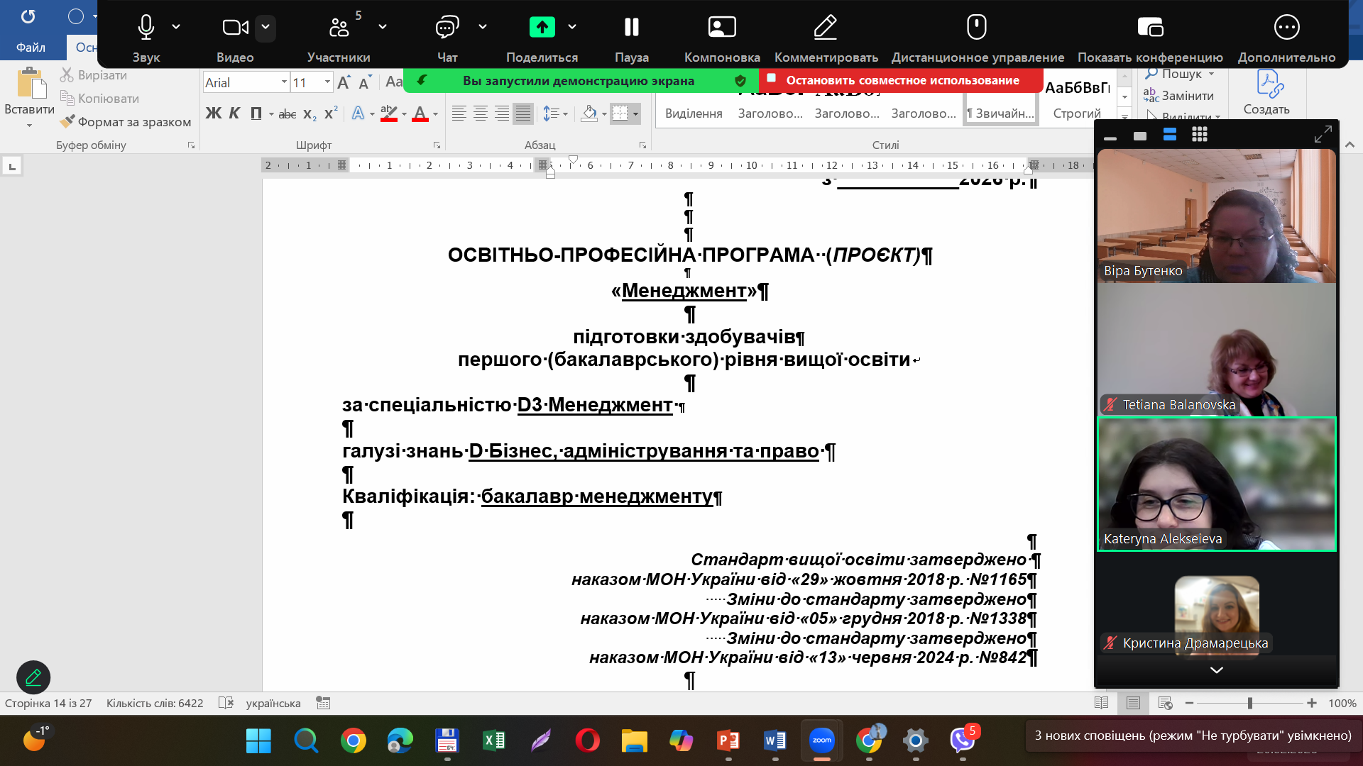 Також гарант освітньої програми Віра Бутенко наголосила на необхідності чергового проведення анкетування здобувачів ОП «Менеджмент» і НПП, які забезпечують освітній процес на даній освітній програмі.