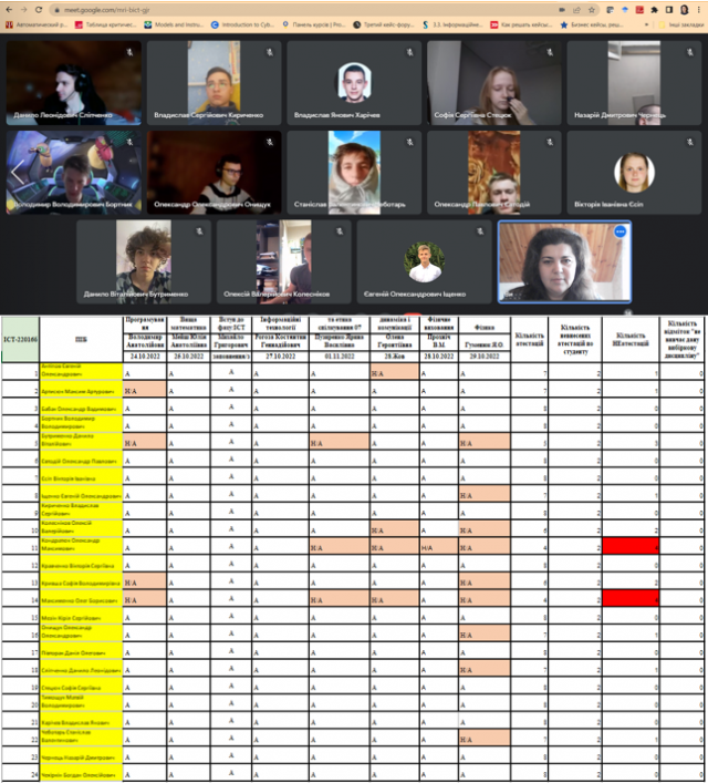 2 листопада 2022 року наставник академічної групи 1 курсу спеціальності «Інформаційні системи і технології» Таїсія Саяпіна провела онлайн-зустріч зі студентами.