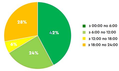 Рис. 1. Діаграма розподілу комплексного індексу якості атмосферного повітря (CAQI) протягом 2023 року в м. Києві Серед районів міста найгірше повітря спостерігалось у Солом’янському і Голосіївському районах (відповідно 42% і 41% загального часу спостережень рівень забруднень був середній, високий або й дуже високий). Незважаючи на такі високі показники комплексного індексу якості атмосферного повітря (CAQI) кожна з 7 референтних станцій протягом року фіксувала в середньому близько 60 перевищень максимально разових ГДК і біля 8 раз перевищення середньодобових ГДК для оксидів азоту. Цікавий розподіл перевищення середньодобових рівнів ГДК для сірководню по станції на вул. Харківське Шосе, 7/1 - на інших станціях таких перевищень не зафіксовано (рис. 2). В доповіді прозвучало одне пояснення – причиною є сміттєспалювальний завод «Енергія». Найбільшу тривогу викликає інформація про перевищення середньодобових ГДК для приземного озону – в середньому близько 290 раз по кожній з 6 референтних станцій (окрім станції на вул. Харківське Шосе, 7/1).
