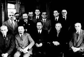 Перше засідання Президії АН УРСР після повернення Академії з евакуації до визволеного Києва. 1944 р. (сидять ліворуч акад О. О. Богомолець і акад. О. В. Палладін)