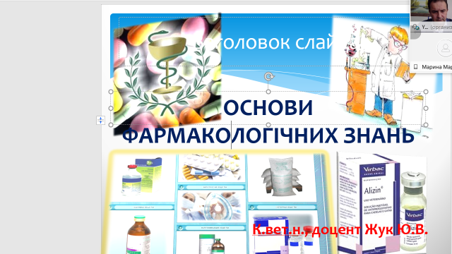 Так, доцентом Ю.В. Жуком для студентів 2 курсу скороченого терміну навчання факультету тваринництва та водних біоресурсів (спеціальність «Технологія виробництва і переробки продукції тваринництва») щосереди дистанційно, з використанням платформи Cisco Webex, проводяться лекції з дисципліни «Основи ветеринарії». До кожної теми лекції підготовлені цікаві та унаочнені презентації. Під час лекції відбувається постійне спілкування лектора із студентами.
