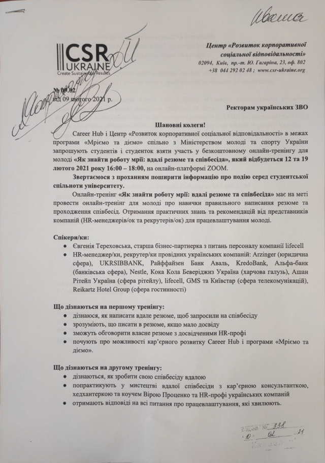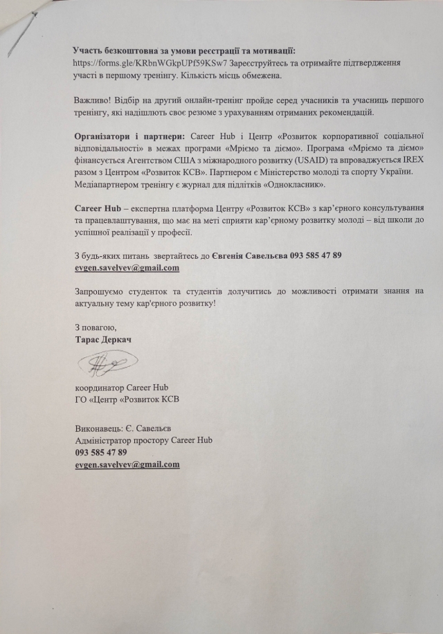Онлайн-тренінг для молоді "Як знайти роботу мрії: вдалі резюме та співбесіда"