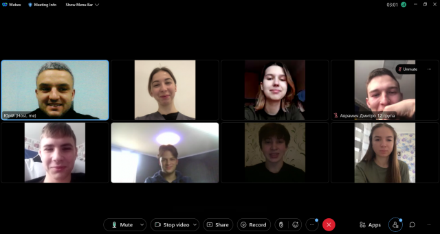 Онлайн зустріч куратора кафедри акушерства, гінекології та біотехнології відтворення тварин Масаловича Юрія із студентами 12 групи 1 курсу.