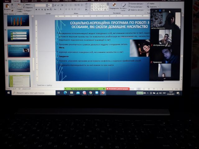 В промові, Лариси Афанасенко, розглядалось питання деонтологічних особливостей проходження навчальної (реабілітаційної) практики. Практичне навчання студентів забезпечує виконання навчально-практичних завдань на основі реалізації головного принципу роботи психолога – «не нашкодь!» Оскільки ситуацій, в яких студент-практикант може свідомо чи несвідомо нашкодити клієнту, існує чимало і всі їх передбачити неможливо. Було наголошено, що у випадку, коли студент-практикант сумнівається у своїх діях, він повинен звернутися до керівника навчальної практики чи практичного психолога за роз’ясненням окремих положень Етичного кодексу. До зустрічі доєдналась Надія Галінкіна, практичний психолог Центру у справах сім’ї та жінок «Родинний дім», яка розповіла про діяльність організації, провела історичний екскурс його створення, зазначила завдання та основні напрями роботи. Жваве обговорення серед практикантів викликав аналіз Комплексної Програми корекційно-реабілітаційної роботи з дівчатами (14-18 років) та жінками, які пережили насильство або належать до групи ризику та Комплексної Програми корекційної роботи з чоловіками, які вчиняють насильство або належать до групи ризику щодо його вчинення, що є методичним матеріалом для їх подальшої практично-орієнтованої роботи.