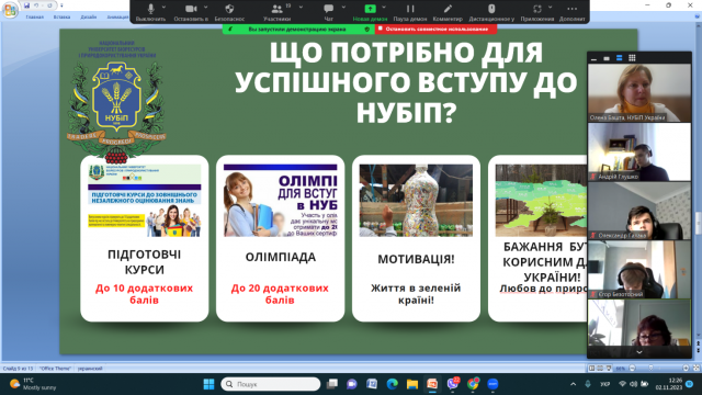 Олена Валентинівна акцентувала увагу , що потрібно для успішного вступу до НУБіП України, зосередила увагу на проходження навчальних підготовчих курсів та можливості отримання додаткових балів за участь у предметних олімпіадах, які щорічно проводять в НУБіП України.