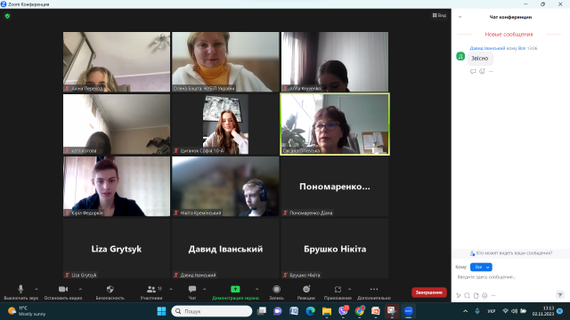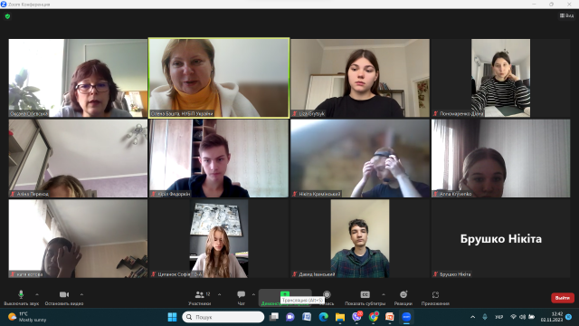 Доцент кафедри фітопатології ім. акад. В.Ф. Пересипкіна Башта Олена Валентинівна в дистанційному форматі ознайомила учнів ліцею з історією університету, якому у 2023 р. виповнилося 125 років. Познайомила з факультетами, які функціонують у вузі, акцентувавши увагу на особливості навчання, а також можливостей продуктивно використовувати свій вільний час в різноманітних наукових гуртках, творчих колективах, спортивних секціях університету.