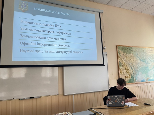 На передзахисті викладачі кафедри управління земельними ресурсами оцінювали готовність роботи – студенти презентували свої дослідження, а викладачі аналізували їх на відповідність академічним стандартам; виявляли недоліки та потенціал покращення – комісія надала рекомендації щодо змісту, оформлення та обґрунтованості висновків; перевірили підготовку до публічного захисту – студенти отримали досвід презентації, ведення наукової дискусії та відповідей на запитання комісії; керівники надали рекомендації щодо покращення, які студенти мають врахувати перед фінальним захистом.