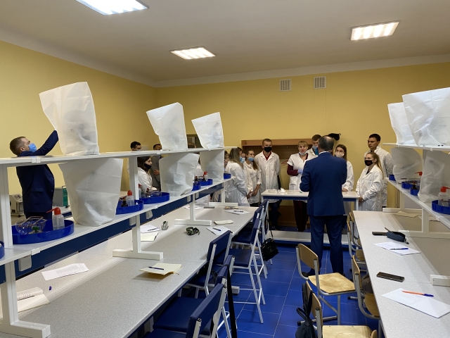 Спочатку члени комісії ознайомились з веденням документації у деканаті за спеціальностями «Технологія виробництва і переробки продукції тваринництва» та «Водні біоресурси та аквакультура». Потому вони перейшли до огляду матеріально-технічної бази факультету та оглянули частину об’єктів, які були зроблені за останні роки. Комісія проінспектувала у навчальному корпусі № 1 центр водних біоресурсів та аквакультури, який знаходиться на фінальній стадії завершення, новостворені навчальні лабораторії кафедр годівлі тварин та технології кормів ім. П.Д. Пшеничного, генетики, розведення та біотехнології тварин і біології тварин. Члени комісії з позитивом відзначили, що факультет є учасником міжнародного гранту за програмою Erasmus + “Improving skills in laboratory practice for agrо-food specialists in eastern Europe» в рамках якого було закуплено обладнання для лабораторії молекулярно-генетичних досліджень у тваринництві на суму понад 20 тис. євро. Також вони перевірили якість проведення лабораторно-практичних занять, які відбуваються очно з розподілом груп на підгрупи та дотриманням усіх карантинних вимог та лекційних занять, які відбуваються дистанційно на різних платформах.