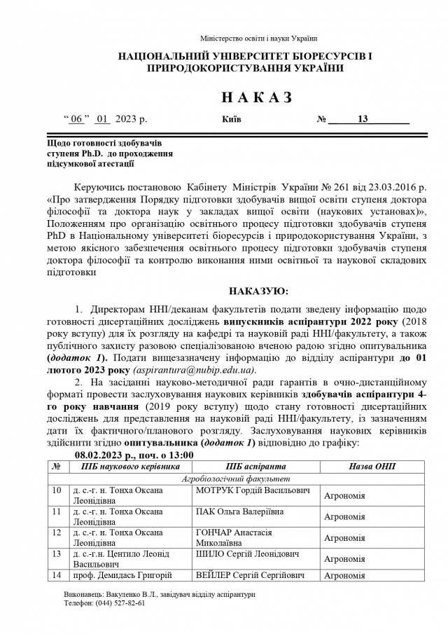 Перевірка виконання освітньої складової аспірантами 1-го – 3-го років навчання (2020-2022 років вступу) проходитиме до 13 лютого.