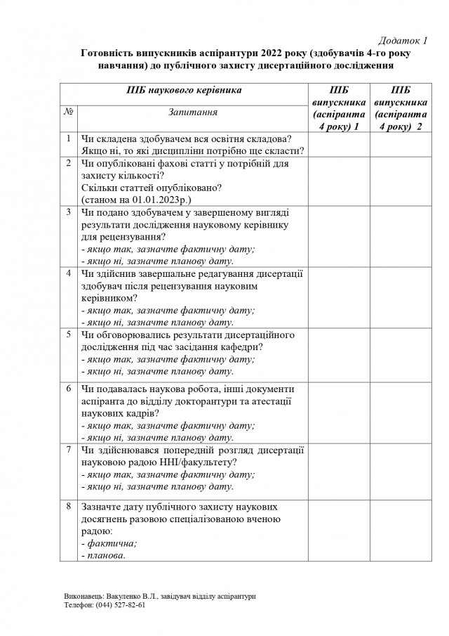 Перевірка готовності здобувачів ступеня Ph.D. до проходження підсумкової атестації
