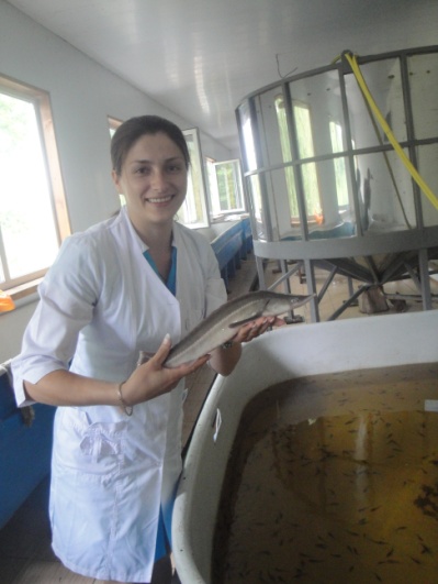 Асистент кафедри аквакультури Шумова В.М. з плідником стерляді