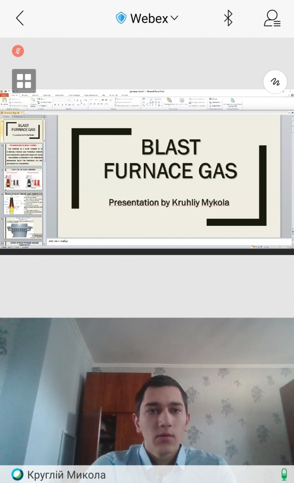 Однією з робочих мов конференції була англійська. Тому студент Круглій М.М. (науковий керівник – професор Афтанділянц Є.Г.) вирішив зробити доповідь на ній. Вона стосувалась доменного (колошникового) газу та його використання у металургії.