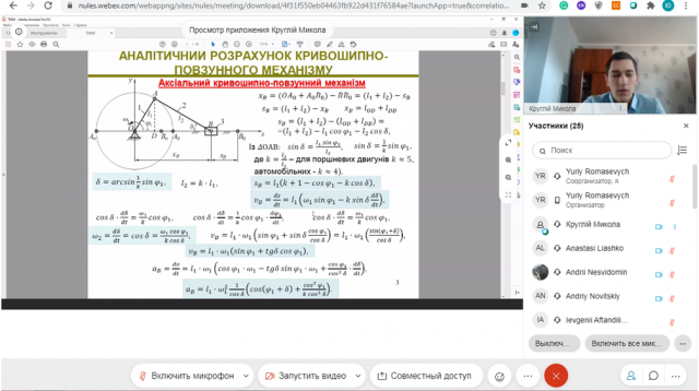 Відмітимо, що цього року декілька студентів підготували по дві доповіді. Серед них і Круглій М.М. (науковий керівник – доцент Черниш О.М.). Він розповів про аналітичні методи розрахунку кінематики кривошипно-повзунного механізму та порівняв їх із графо-аналітичними.