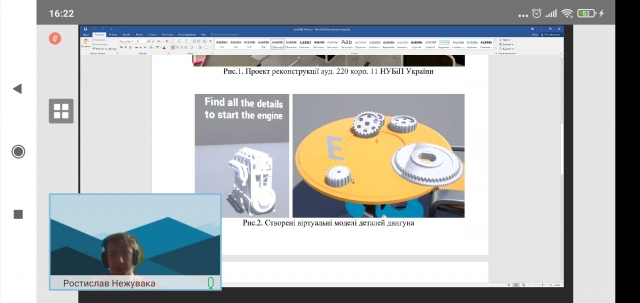 Насамкінець студенти Смільняк Ростислав та Нежувака Ростислав представили результати, які їм вдалось отримати використовуючи технології віртуальної реальності в навчальному процесі. Цією роботою керує доцент кафедри нарисної геометрії, комп’ютерної графіки та дизайну Несвідомін А.В.