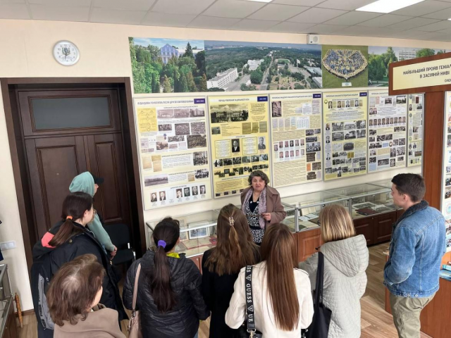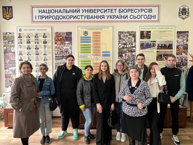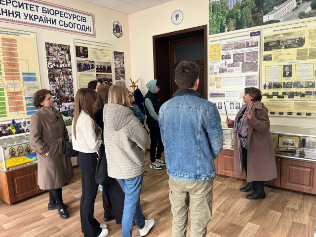За час екскурсії ми дізналися історію становлення Університету. Важливо, що Тетяні Миколаївні вдалося так побудувати нашу зустріч, що студенти отримали живе спілкування, задавали безліч питань, а отже, думаю, не залишились байдужими. Історія створення НУБіП України зв’язала часи Трипільської культури, наше сьогодення і майбутнє. Студенти дізналися, що перша пасіка в світі з’явилася саме завдяки винаходу в стінах нашого університету, отримали багато інформації про перепетії становлення НУБіП у радянські часи, коли багато видатних людей, викладачів, науковців, за проукраїнську позицію були знищені владою. Особливий куточок пам’яті, де представлені експонати, пов’язані з діяльністю НУБіП України під час Другої світової війни, фото героїв, працівників та студентів, що не повернулися з тієї війни. А поряд з цим фото наших колег, що віддали життя за нашу свободу вже сьогодні, під час Революції Гідності, у війні з росією, починаючи з 2014 року, нажаль, поповнюється і експозиція  наших героїв, що загинули уже на цій повномасштабній війні.