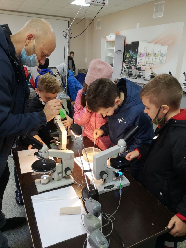 Школярі відвідали також науково-популярний центр НАУКА 3.0 «Зоопарк під мікроскопом», де оглянули під мікроскопами живі організми, яких не видно неозброєним оком.