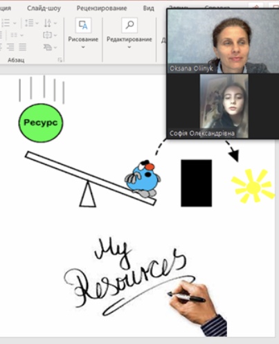 Допитливою учасницею арт-терапевтичного заняття стала Софія Бутенко – учениця 10 класу Городище-Пустоварівської загальноосвітньої школи (Київська область). У процесі цілетворення, побудови професійних планів у Софії відбувся інсайт – якості, які вона вважала другорядними, виявились важливими у майбутній професійній реалізації і їх розвитку слід приділити належної уваги. За словами старшокласниці техніки арт-терапії допомогли їй структурувати думки, ідеї щодо власних можливостей і зрозуміти, яким чином вони допоможуть їй у досягненні бажаного образу професіонала.