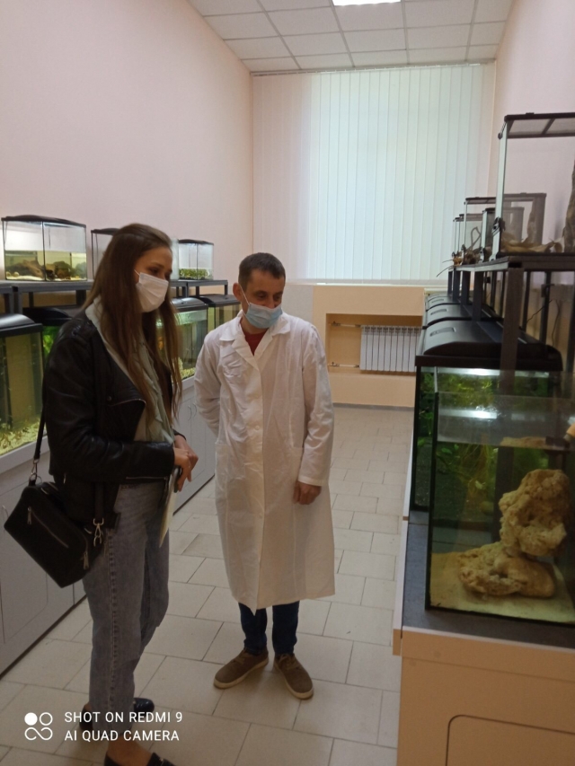 Доцент Рудик-Леуська Наталія Ярославівна (виконуюча обов'язки завідувача кафедри гідробіології та іхтіології) та асистент Климковецький Антон Анатолійович провели екскурсію по лабораторіях центру. Оксана Олександрівна відмітила значну зміну матеріально-технічної бази центру, і позаздрила сучасному поколінню студентів, які мають змогу проходити навчання у спеціалізованих лабораторіях, знайомитись з сучасними методиками та приладами в усіх аспектах даної спеціальності.