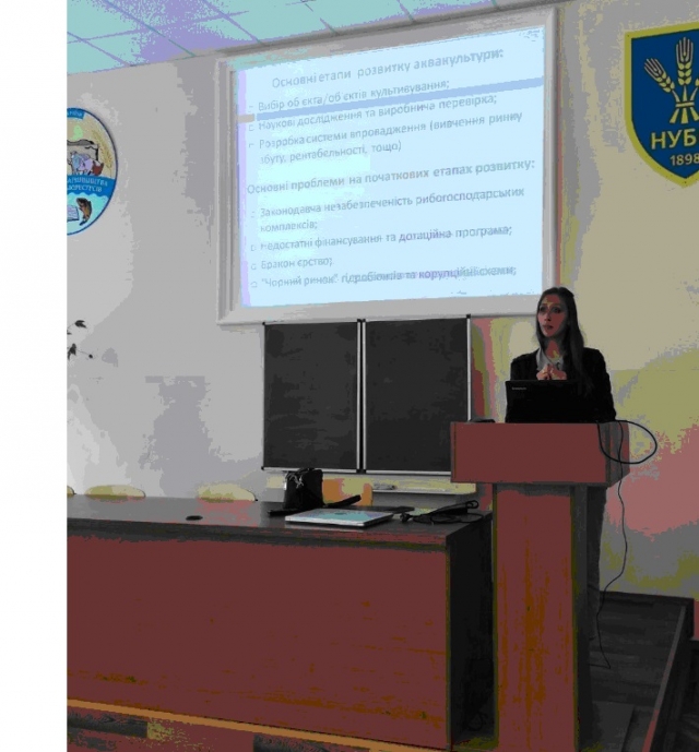 Після ознайомлення з центром Оксана Батуревич прочитала на високому науковому рівні лекцію для студентів на тему «Науково-практичні методи підвищення рибопродуктивності водойм та проблеми розвитку рибної галузі в Україні».