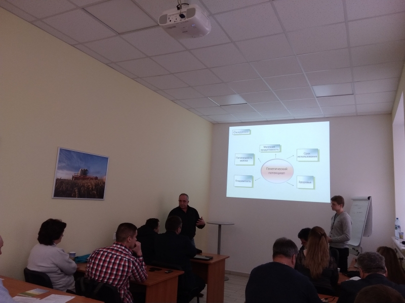 Перший день був повністю присвячений питанням годівлі дійних корів. Консультант з багаторічним досвідом, Тіно Хохмут протягом дня розповідав про окремі аспекти забезпечення корів поживними речовинами, їх використання у організмі та вплив на продуктивність і здоров’я. Слухачі семінару приймали активну участь у обговоренні та задавали питання доповідачу, адже теми, які він піднімав були актуальними та цікавими.