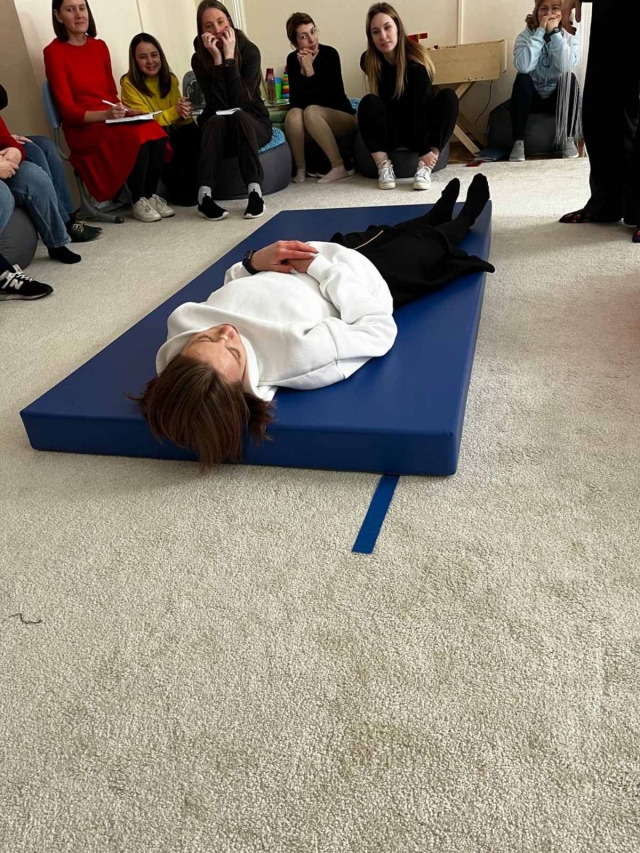 – Перші два дні ми були присутні на тренінгу, який проводила Тетяна Кострицька – фахівець із сенсорної інтеграції. Мали змогу спостерігати за її роботою з дітьми з ООП, навчитися, як проводиться діагностика. Також дізнались про особливості встановлення контакту й взаємодії з дітьми з ООП; принципи побудови індивідуального корекційно-реабілітаційного маршруту; методики, що доповнюють методичний інструментарій фахівця з сенсорної інтеграції; специфіку організації смуги перешкод відповідно до терапевтичних цілей. А також самі мали змогу дослідити особливості сприйняття власного тіла.