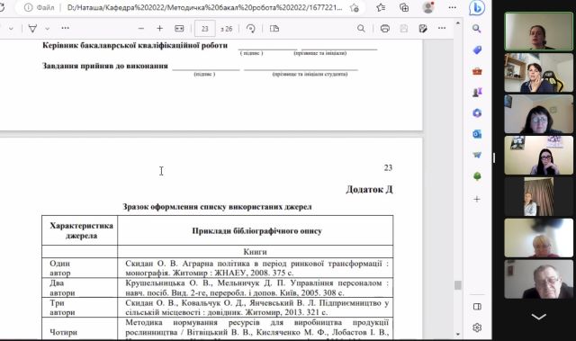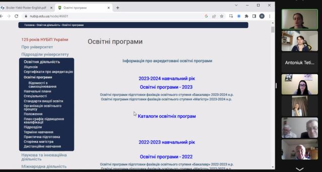 Саме питанням удосконалення програми підготовки здобувачів освітнього ступеня «Бакалавр», які навчаються за освітньо-професійної програмою «Технологія виробництва і переробки продукції тваринництва» на факультеті тваринництва та водних біоресурсів, була присвячена зустріч гаранта ОП доктора с.-г. наук, професора кафедри технологій у птахівництві, свинарстві та вівчарстві Наталії Прокопенко з науково-педагогічними працівниками факультету, які забезпечують викладання нормативних і варіативних освітніх компонент, є керівниками бакалаврської кваліфікаційної роботи.
