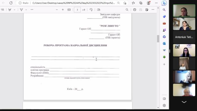 Колектив факультету плідно працює над оновленням навчально-методичних комплексів навчальних дисциплін освітніх програм. На зустрічі були уточнені питання щодо структури, змісту, оформлення робочих програм і силабусів дисциплін на 2023-2024 навчальний рік, які підлягають трансформації відповідно Наказу ректора №244 від 23.03.2023 р. «Про оновлення навчально-методичних комплексів дисциплін на 2023-2024 н. р.».